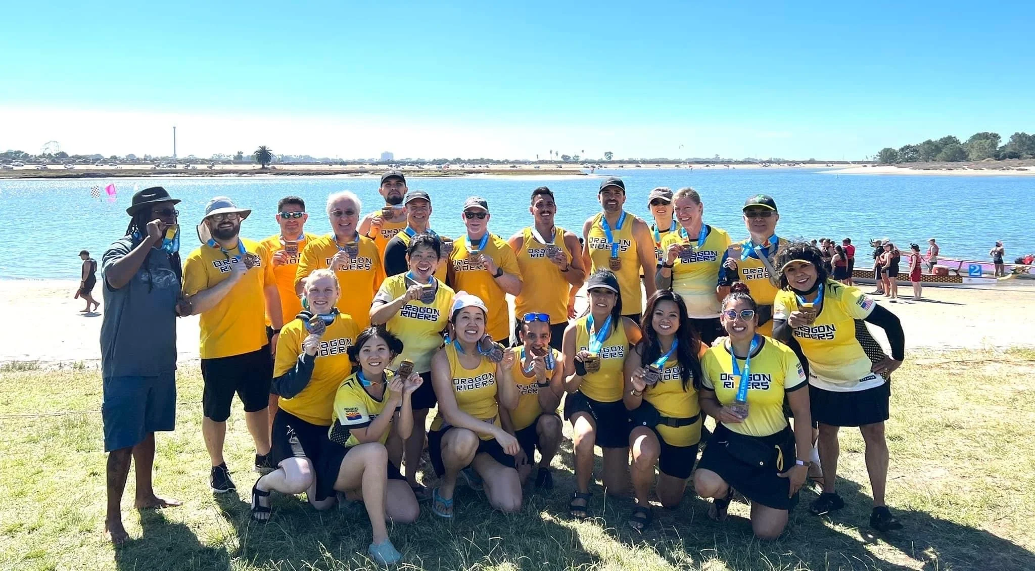 The AZ Dragon Riders at the San Diego Dragon Boat Festival in 2022 where we competed against some tough competition and earned 3rd place in the B Division - Mixed 500m!